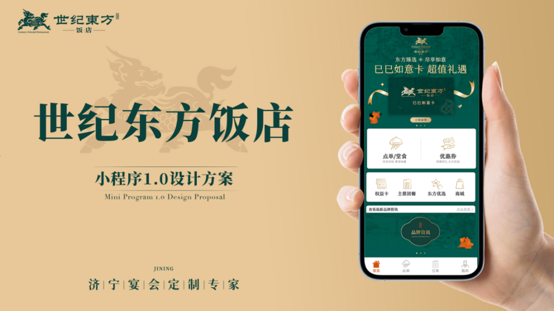 融兴餐饮小程序在设计上充分考虑用户需求,通过精心布局和功能优化,为用户带来便捷高效的使用体验。首页弹窗设计确保最新优惠活动信息第一时间触达用户,提高用户参与度与点击量。功能按钮依据用户日常使用频率合理排布,用户登录小程序后,可轻松实现一键点餐、一键用券服务,操作简单流畅,节省时间成本。同时,小程序设有会员服务模块,用户可实时查询会员权益、储值余额、消费明细及优惠券信息,享受一站式会员服务。此外,小程序还预留了文创礼品和积分商城入口,为未来品牌文化拓展与用户互动提供了平台支撑。在视觉设计上,小程序以“雅致体验·东方韵味”为核心,整体采用简约大气的风格,聚焦传达世纪东方饭店的高端品牌定位与多元宴会文化。通过品牌配色(绿、金)与包间实景图,强化了品牌的品质信赖感;同时,通过包间命名典故、艺术陈设等细节,呈现出“君子八雅·礼宴四方”的东方待客哲学,引发用户的文化共鸣。小程序的团餐推荐页面以“多元聚享·丰俭由心”为核心理念,通过模块化视觉呈现了服务的灵活适配性与高性价比品质。套餐按人数梯度清晰分类,搭配真实菜品图与适用标签,直观建立用户需求联想;同时,突出套餐核心权益和内容,方便用户快速做出决策。市场营销部负责人表示:“此次小程序的上线,是我们对数字化服务的一次重要探索。我们希望通过这一平台,为用户提供更加便捷、高效的服务,同时传递世纪东方饭店的品牌文化和价值观。”下一步,市场营销部将继续优化小程序功能,不断提升用户体验,为高端宴会服务领域树立新的标杆。
