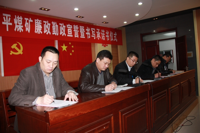 近日,太平煤矿在机关楼六楼会议室举行了2013年度廉政勤政宣誓和书写廉政承诺书仪式。矿领导班子成员、中层以上干部中的党员和“三管”人员中的党员共86人参加了会议。与会人员亲笔书写了廉政承诺书并面向党旗、国旗庄严宣誓。鲁泰煤业副总经理、矿长王付清同志作了重要讲话,党委书记刘岭同志主持会议。