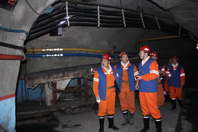 上午九时,李总一行到矿未作停留,即换上工作服下井,深入8307三四分层充填工作面检查指导工作。在工作面,李总边仔细检查边详细询问充填采煤工艺、综合防尘等工作有关情况。随后,李总一行又到-190避难硐室进行了检查。
