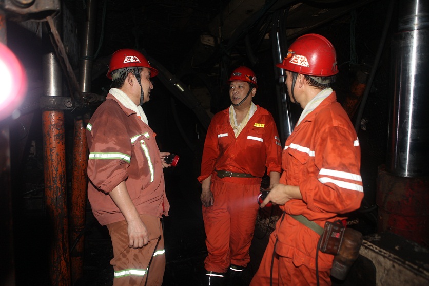 7时30分左右,张广宇一行来到了阳城煤电,径直换衣下井,察看阳城煤矿新安装的1302工作面运转情况。安全管理和生产流程始终是张广宇关心的焦点,他结合周边煤矿事故案例,要求生产方面的管理制度、流程要简易,以便于操作和执行;经营管理制度、流程要精细,以便于相互制衡和堵塞漏洞。由于阳城煤矿1302工作面的孤岛开采受冲击地压威胁,张广宇仔细询问了防冲措施,要求阳城煤电要始终提高警惕,确保监测数据准确可靠,防冲措施落实到位,防冲责任明确到人。结合阳城煤电新近使用的超前支架具有安全系数高、劳动强度低、支护材料少等优势,张广宇强调新技术、新工艺的进步,均来自于现场生产实践,来自于现场职工的小改小革成果的积累。为此,阳城煤电要在设备配套、职工小改小革、技术创新、提高机械化程度、降低人工成本等方面,进一步加大工作力度,条件成熟时,阳城煤电也可成立大学生采煤班,充分发挥大学生队伍综合素质高、创新能力强的优势,激发带动采煤工作面的整体创新能力,把人才强企、创新兴企的理念落到实处。对于生产接续问题,张广宇要求,要提高掘进工效,抓好巷道工程质量管理,优化好开拓布局和掘进队伍配置,做到不因开拓制约生产。