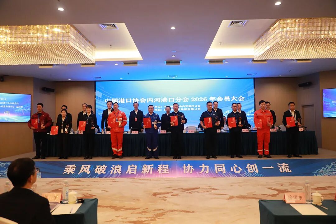 4月22日,中国港口协会内河港口分会2026年会员大会暨一届三次会长会议在安徽省合肥市召开。来自长江、珠江、黑龙江、淮河及京杭运河五大水系的港口企业代表、行业专家及相关部门领导齐聚现场,围绕内河港口高质量发展、智慧化转型及基层班组建设等议题展开深入交流。山东融汇集团龙拱港精彩亮相,两个班组凭借卓越的基层管理实践和创新成果获得表彰,班组代表宋文庆就龙拱港智慧港口建设经验作了专题分享。山东融汇集团党委副书记、董事张雷参加会议。